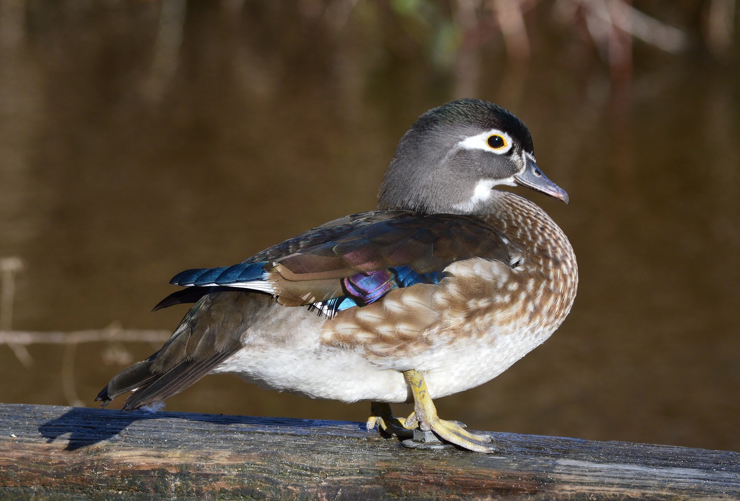 The next birds that we viewed were the dramatic Wood Ducks. I love the markings and colourings of this duck.  First we walked by some females.  Actually this was one of three in a row, that had just chased away a male who was trying to hang out with them.