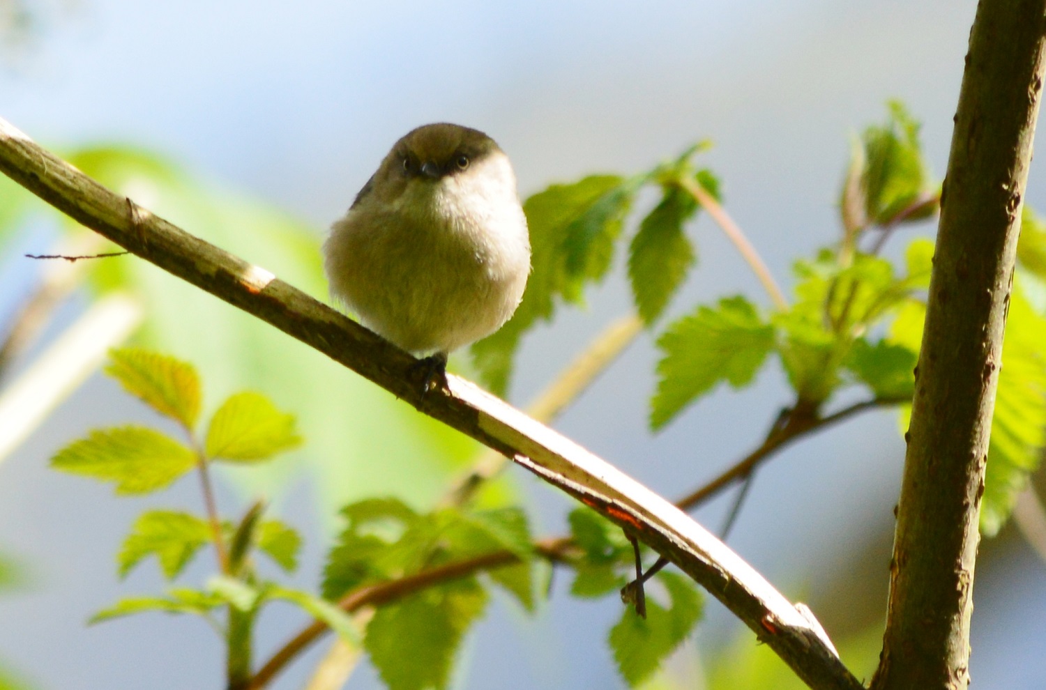 First we took the walking path, starting by the beach. The first new bird I spotted was a little brown-grey girl hanging out mostly in the shade. This was a first for me. I’m sure they’ve been around but this was the first time I’ve been able to identify a Bushtit. I like the lighter eyes, and as I discovered later that’s the indication that this is a female that I viewed.