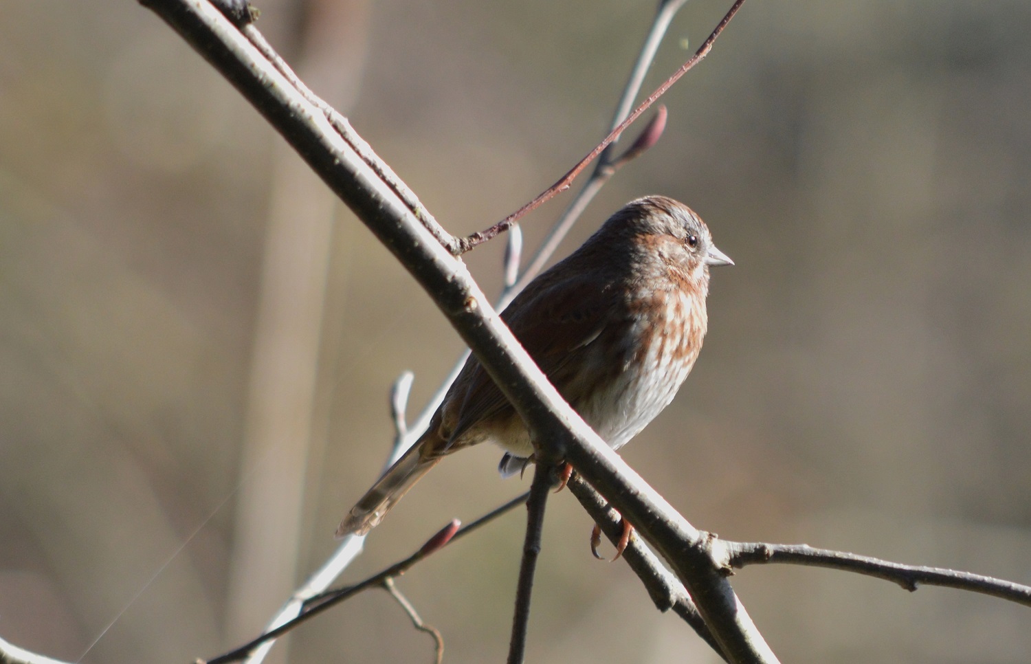The Song Sparrow are very common in this area. I will usually see a handful of them, sometimes foraging on the ground and sometimes sitting at the top of a tree singing it’s song.
