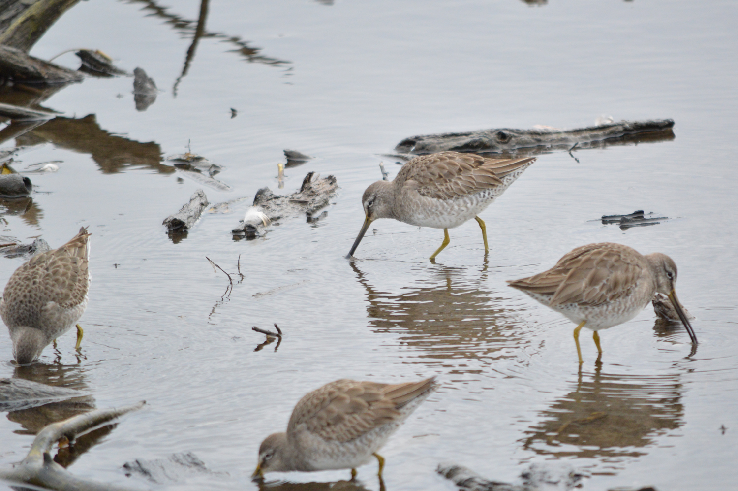 I’m going on a bit of limb though as the Short-billed Dowitcher is VERY similar to the Long-billed Dowitcher. I read somewhere that said the difference between them is that the long-billed’s bill is about 2x the size of it’s head while the short-billed beak is about 1.5x the size. However in other articles I have read that there is quite a crossover between the species. The only other tool I’ve used in my defense is to refer to e-bird to compare against what other birders have seen in the area, which lead me to the Long-billed conclusion. As well, one article I read said that if it’s in fresh water then it’s a 99% chance it’s Long-billed.