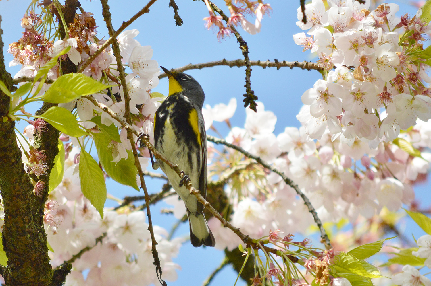 Early this spring it was my pleasure to add the Yellow-rumped Warbler to my 2016 list. This male was hopping around the cherry blossoms at the Rose Gardens in Stanley Park.
